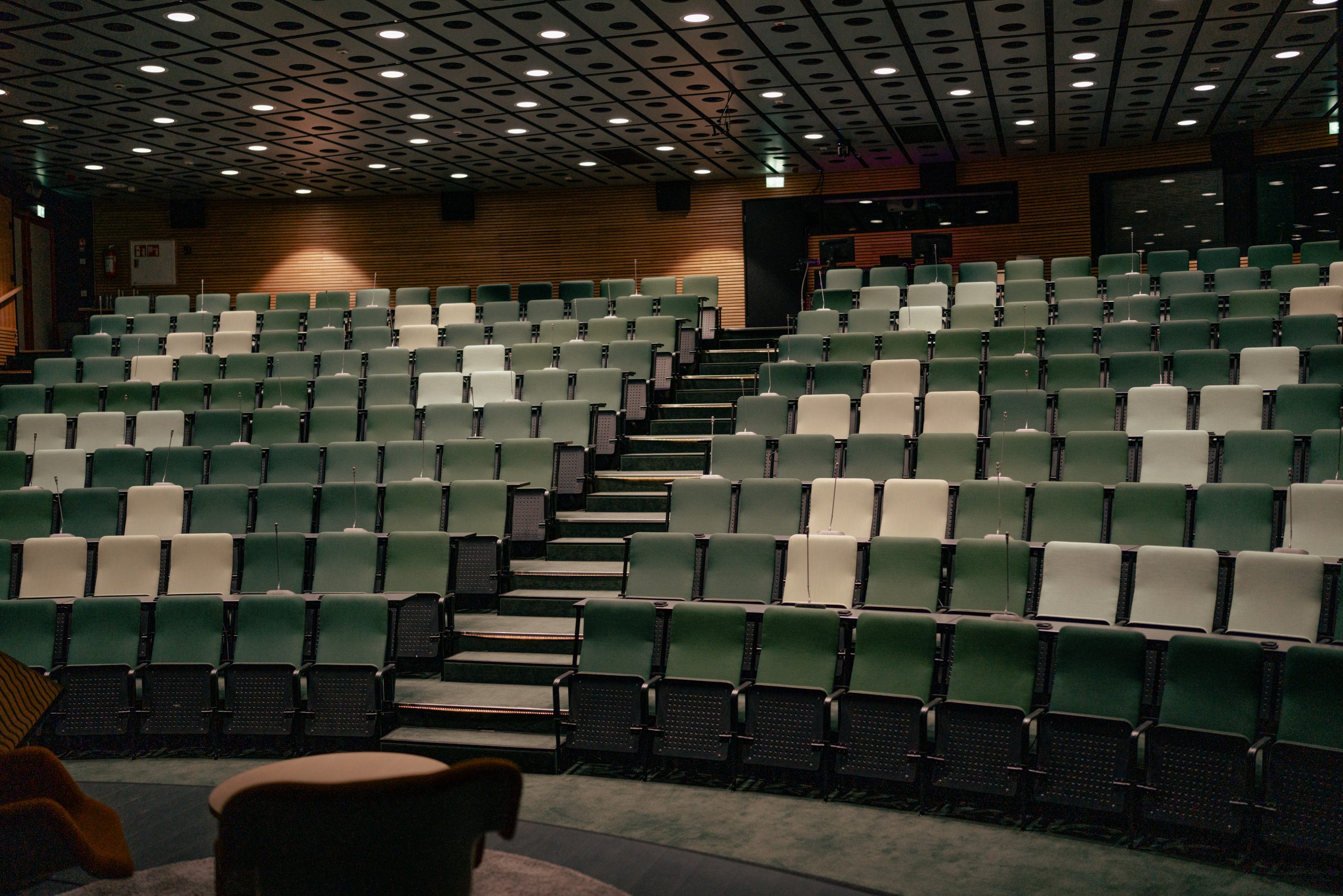 huolellisesti akustisiin ja visuaalisiin ratkaisuihin, jotka tukivat tilan luonnetta ja käyttötarkoitusta.