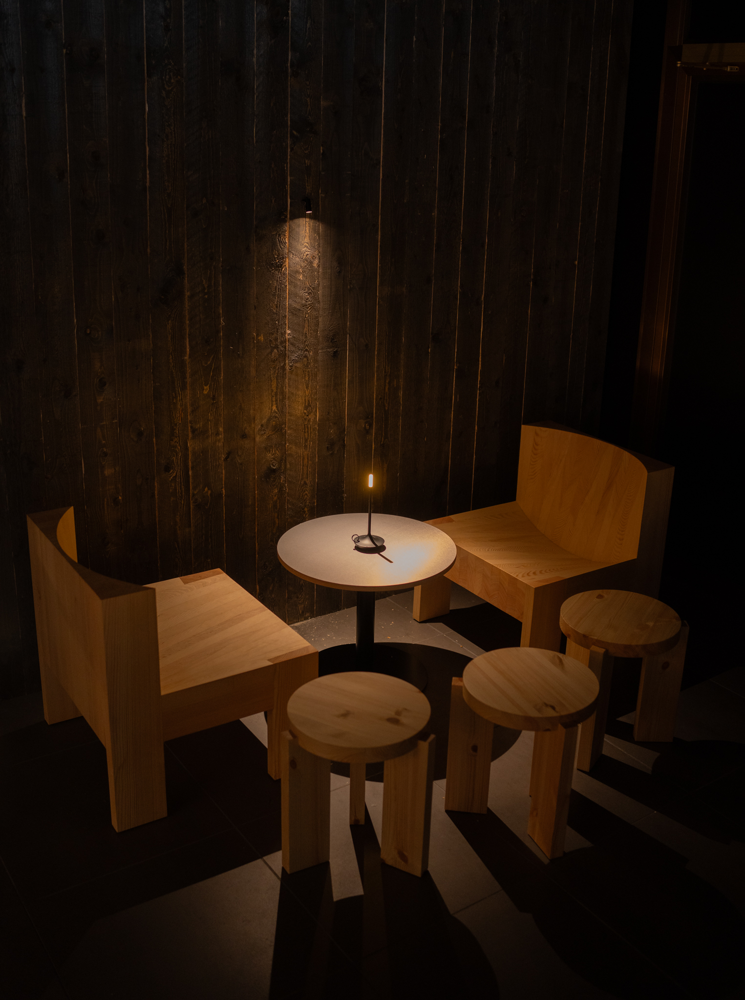 Suunnittelusta vastasi Superminttu, valaistuksesta Saas Instruments, ja asennuksista LR Works. Haasteellisesta tilasta syntyi valon, varjon ja
