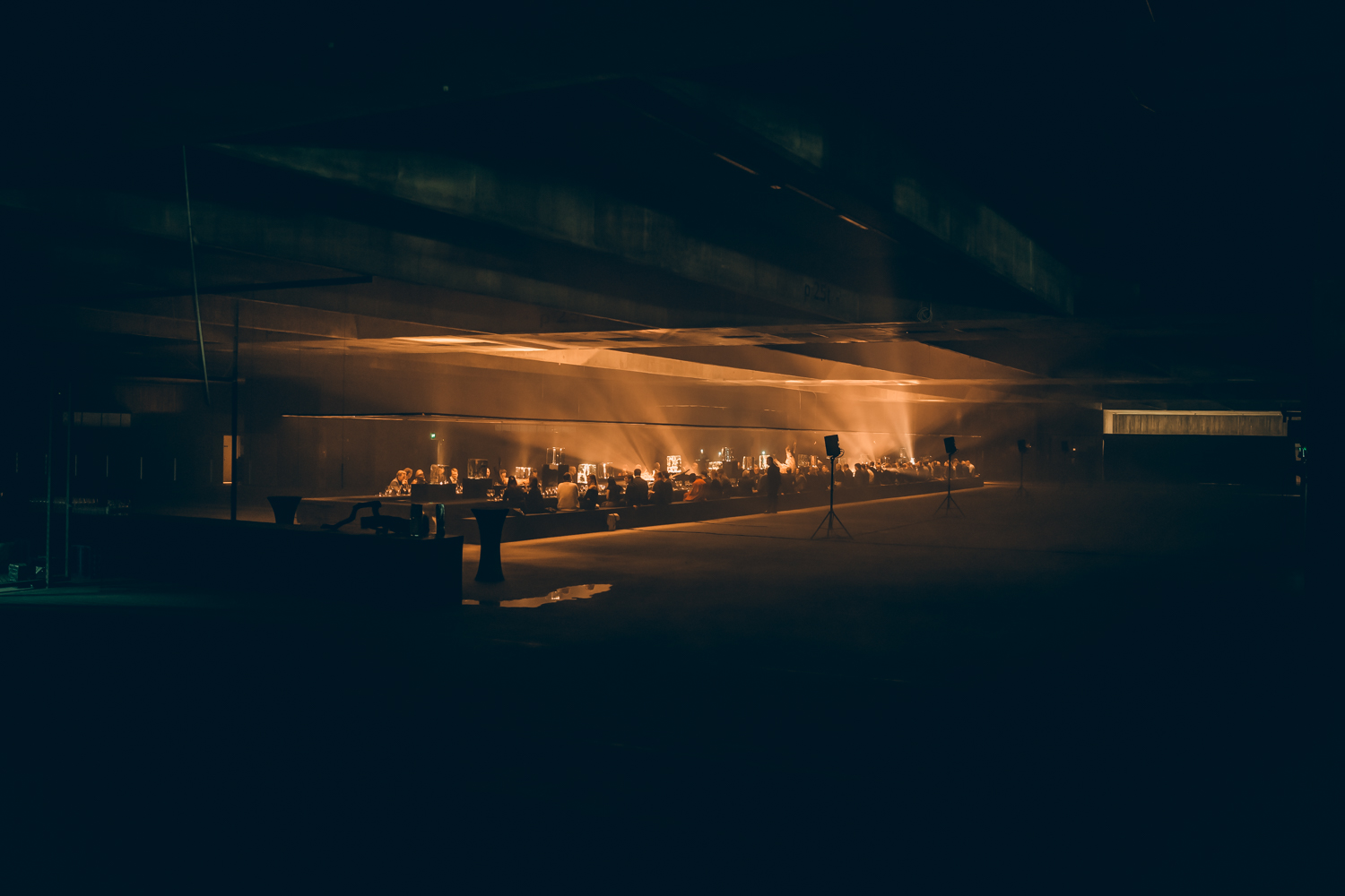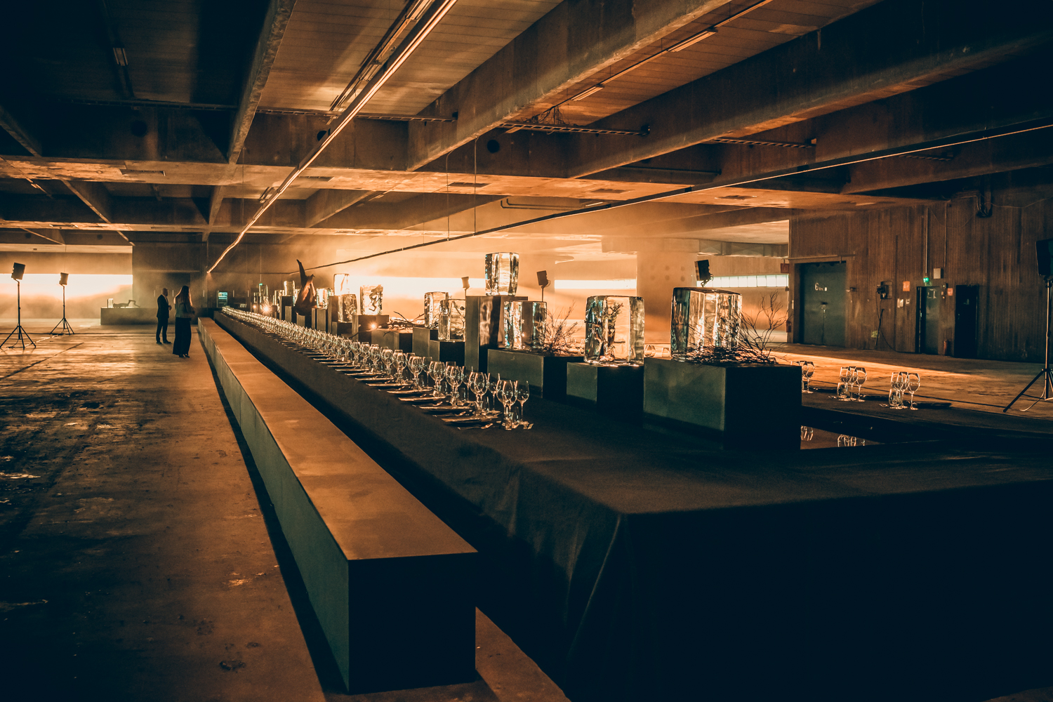 Entinen betonihalli muutettiin valon ehdoilla elämykselliseksi näyttely ja konseptitilaksi Helsingissä.