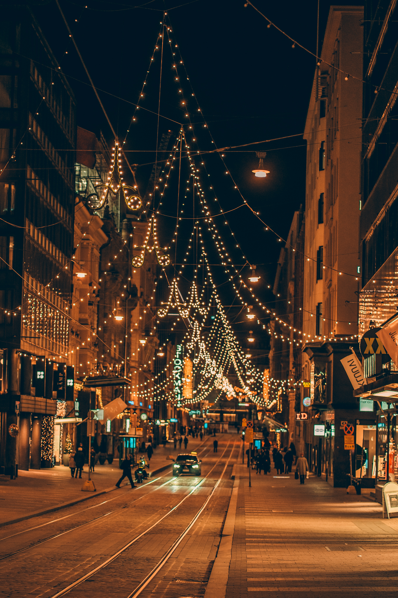 Helsingin ydinkeskustan ikoninen jouluvalaistus – tunnettu perinne ja kaupungin tunnelmallisin katuhetki vuoden pimeimpään aikaan.